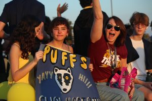 The parade started with JROTC marching, followed by the student-made floats. The homecoming court sits in cars to promote themselves and get students to vote for them. Students riding floats threw out candy to the children. To promote the fall show “Puffs”, theater did a Harry Potter themed float. Track did a beach themed float by dressing up in Hawaiian shirts and wearing leis.